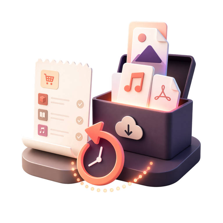 On-the-Fly skips the store-wide post-save scan. Instead, when a customer opens My Account > Downloads, the plugin checks only that user’s eligible orders, grants any missing files immediately, and refreshes the download list on the same request.